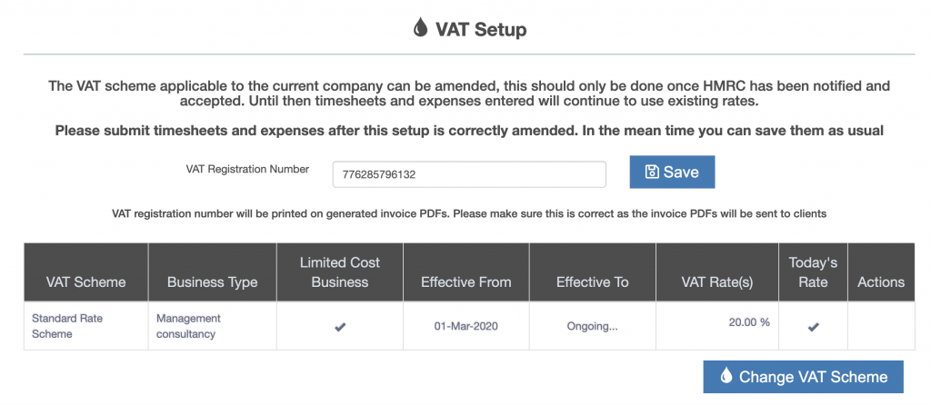 Every company which is registered for VAT will have a VAT registration number. This needs to be added to ZotaBooks. To add the VAT number to ZotaBooks goto the following menu items: