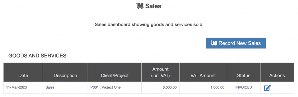 To edit a sale which has been made, click on the action icon on the sales summary screen, as below: