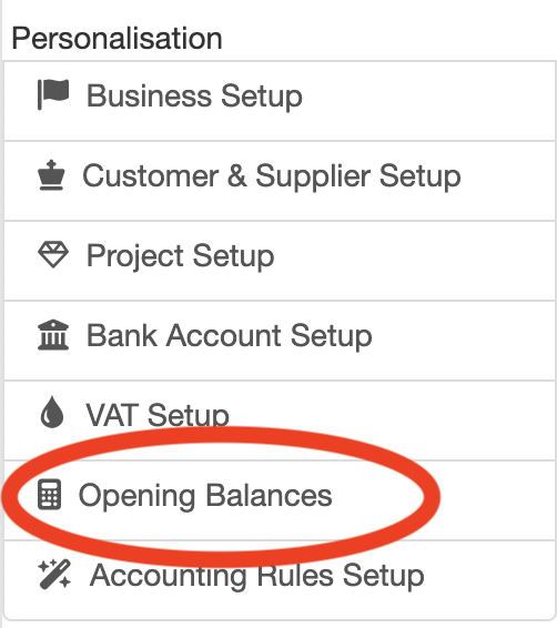 From the left hand menu select “Opening Balances” from “Personalisation”.