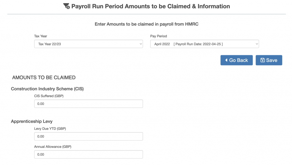- the year to date apprenticeship levy amount to be claimed and the annual allowance for apprenticeship levy.