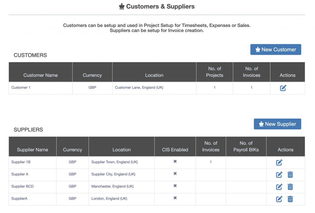 In the left hand menu select”Customers & Suppliers”.
